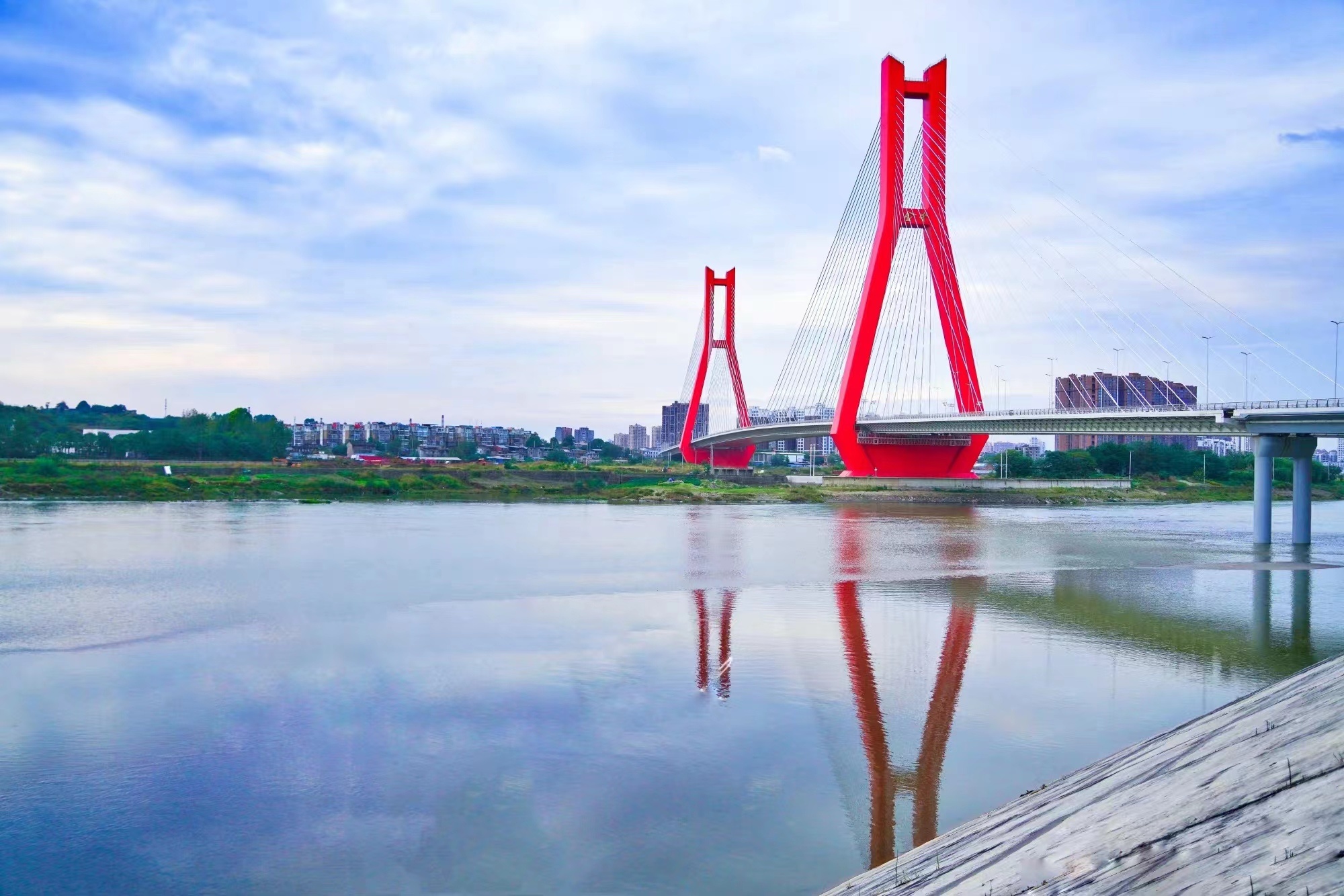 项目概况:成都金堂大桥全长1641m,其中桥梁长度为1297m,引道长度344m。主桥全长860米,主跨跨越江心岛跨度430米,是成都市目跨度最大的双塔双索面钢箱梁斜拉桥。
