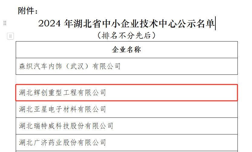 近日,辉创重工在技术创新与人才培养的道路上又迈出了坚实的一步,一举荣获“2024年湖北省中小企业技术中心”及“2024年黄冈市劳模和工匠人才创新工作室”称号。
