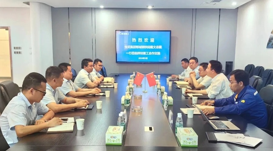 宝武集团鄂城钢铁有限公司总裁、党委副书记陆隆文一行到访辉创团风生产基地,与公司党委书记、董事长戴辉,总经理廖红成及公司相关领导据加强双方业务协同、务实合作,共同推进高质量发展进行深入交流,并达成共识。