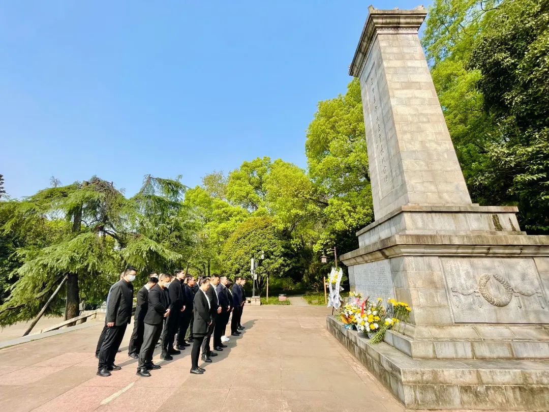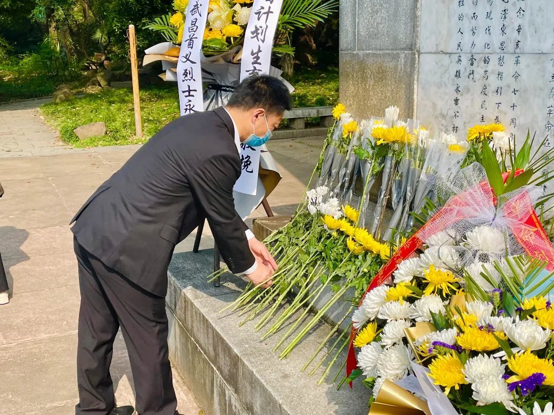 鲜花敬英雄,浩气存天地。第四支部全体党员在辛亥革命武昌首义纪念碑前献花并进行默哀,寄托对人民英雄的深切缅怀和崇高敬意。铭记奋斗历程,赓续红色血脉,把入党誓词作为矢志不渝的“座右铭”,走好新时代的长征路,当好新时代的奋斗者。
