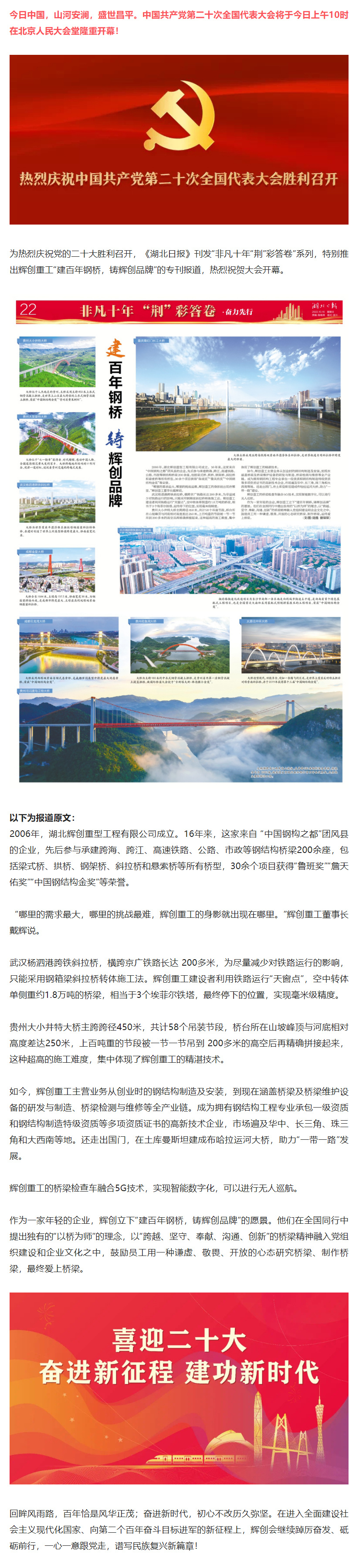 非凡十年“荆”彩答卷,湖北日报关于辉创重工的专刊报道来了!