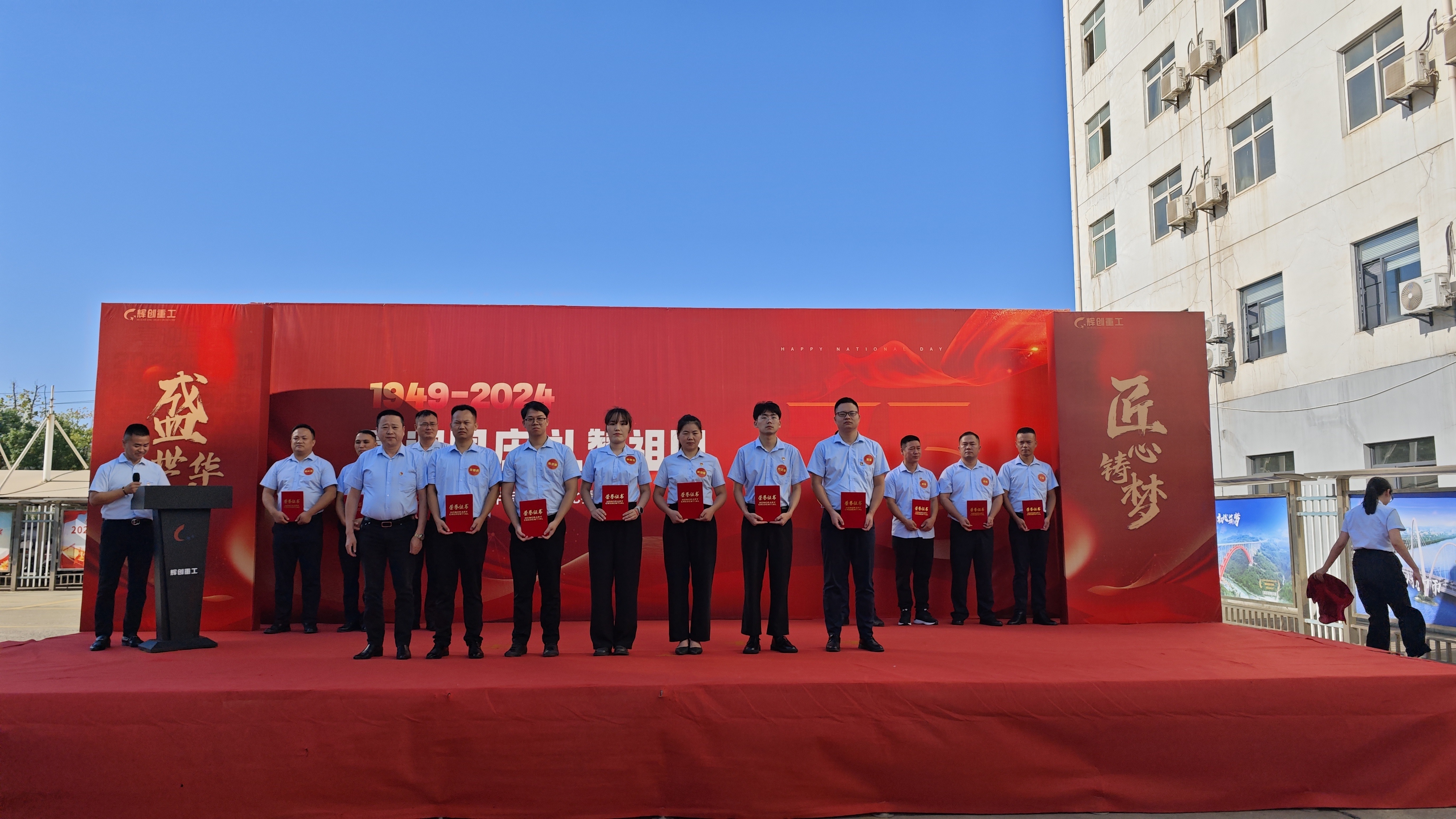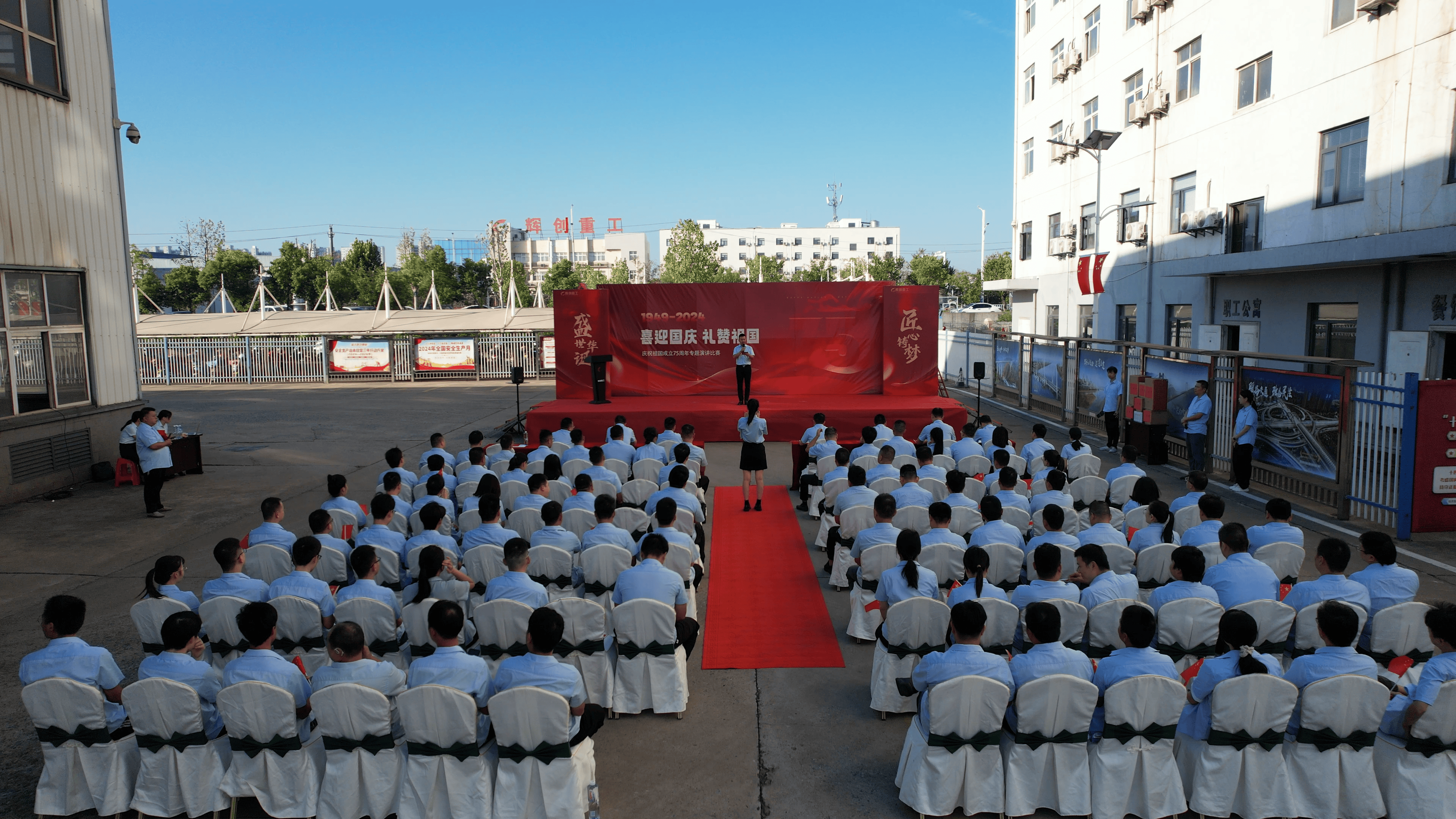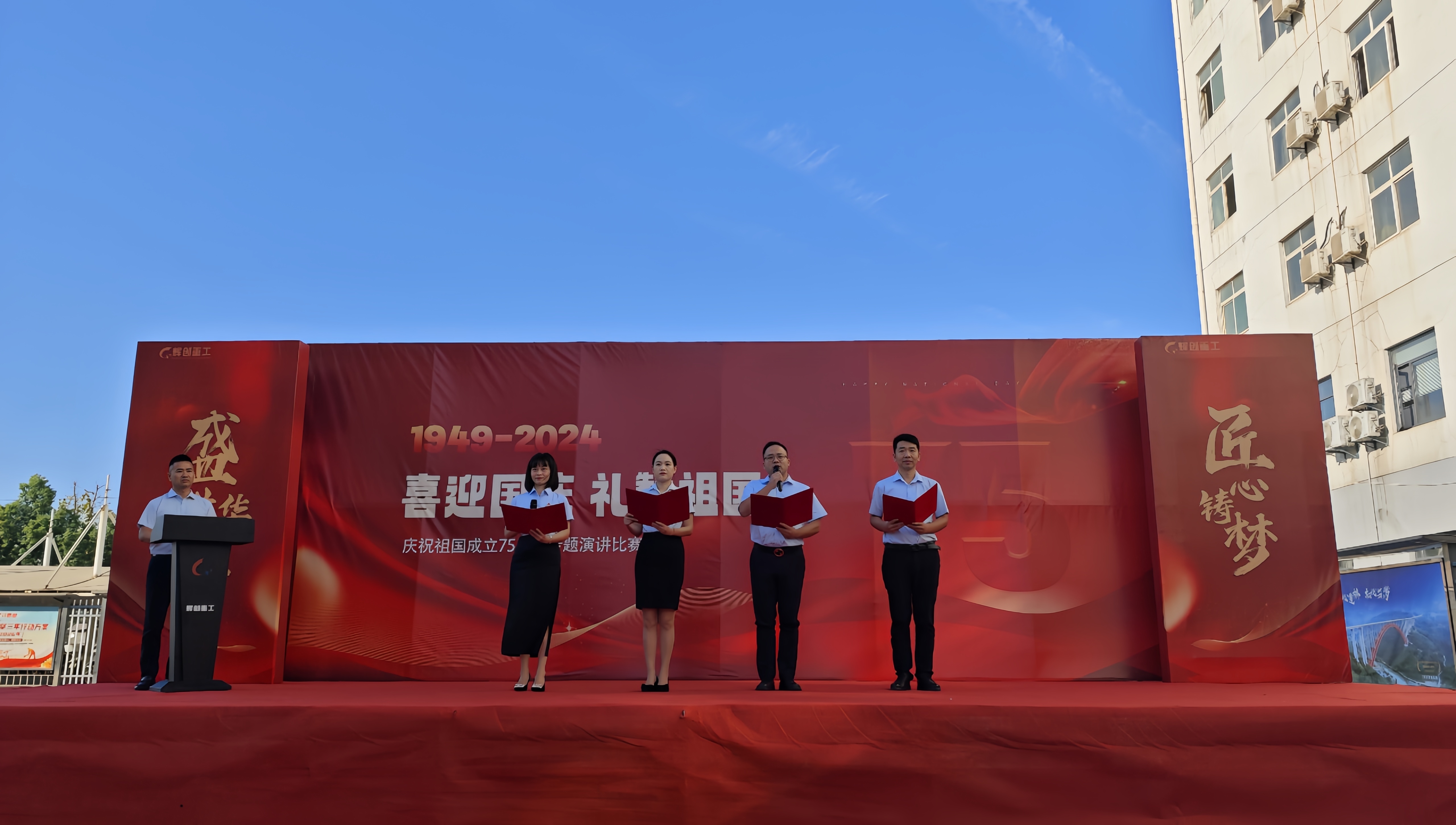 为庆祝新中国成立 75 周年,弘扬爱国主义精神,增强民族自豪感和爱国热情,辉创重工在团风生产基地举办了“喜迎国庆 礼赞祖国”主题演讲比赛活动。