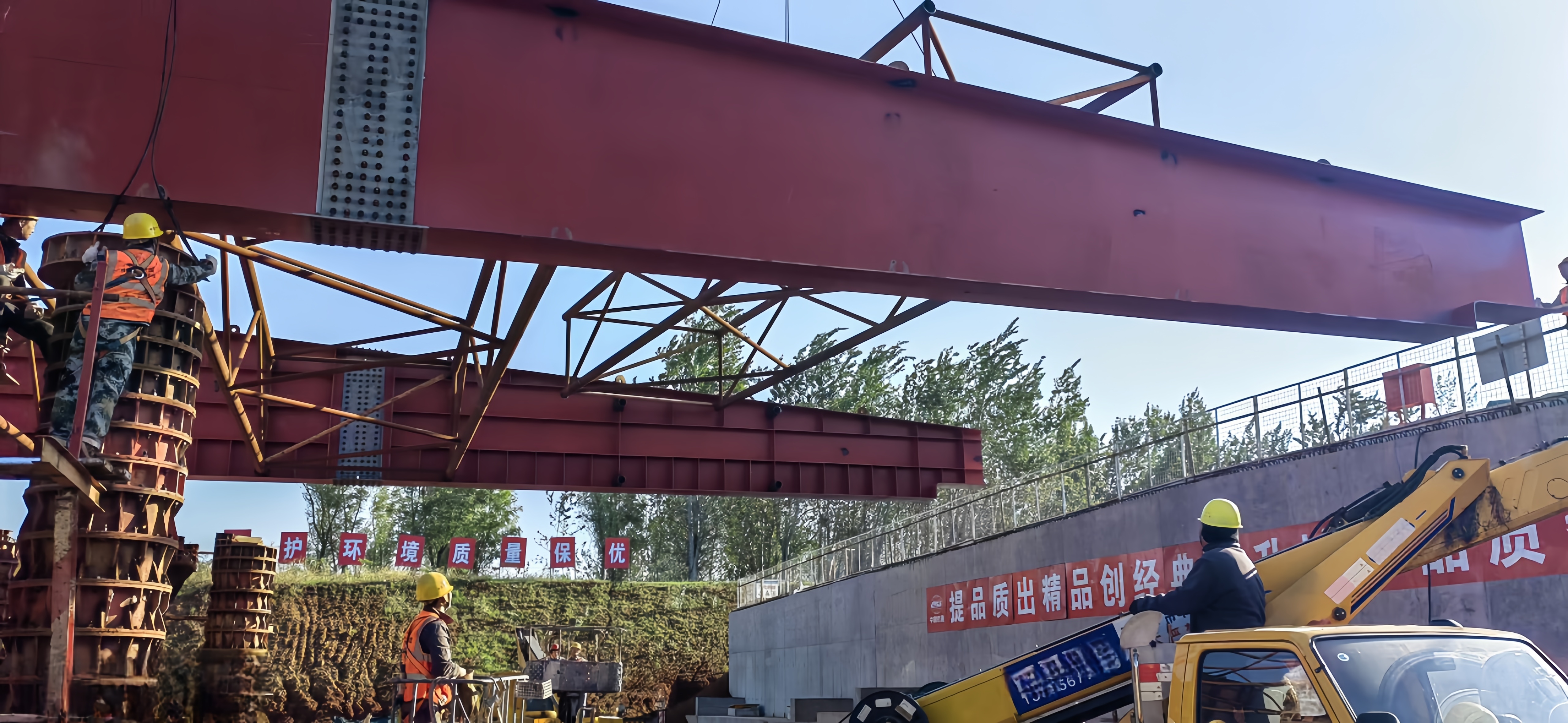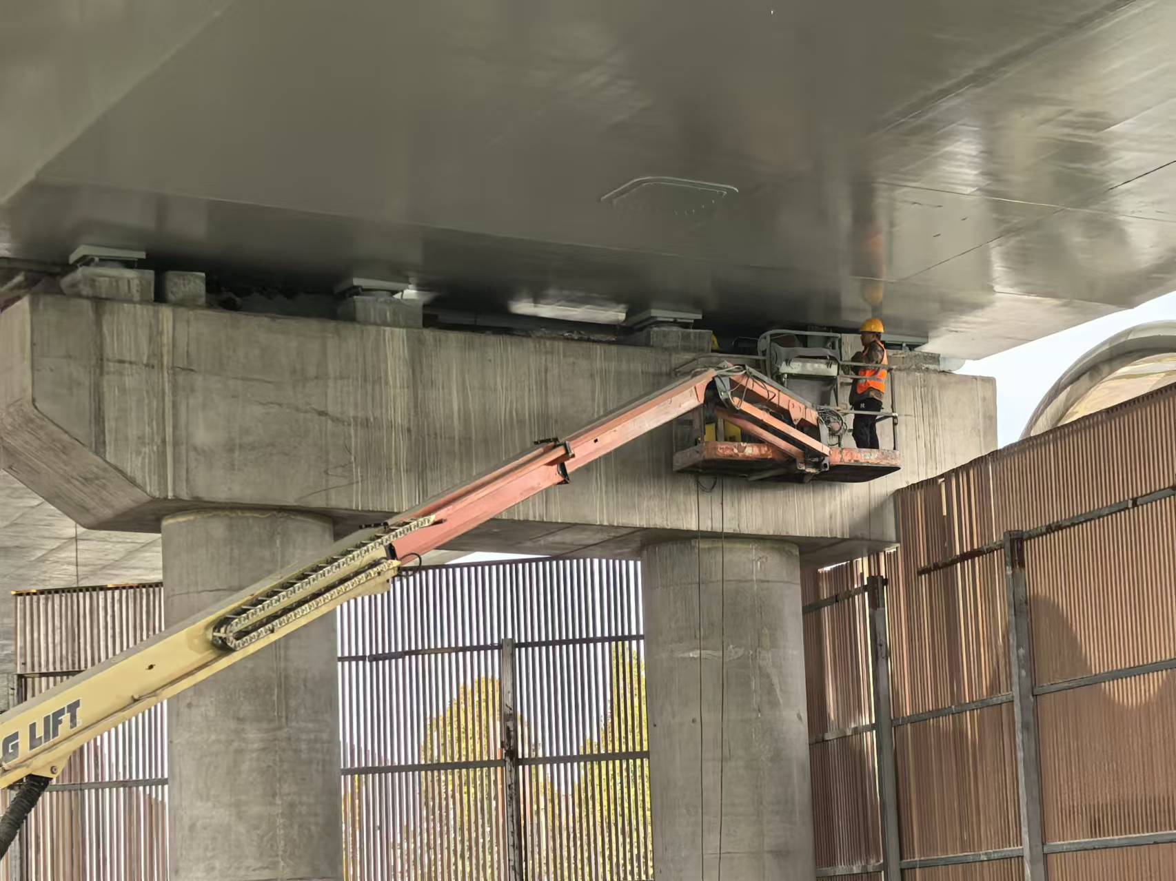 目前项目建设按计划进行,项目部正在装焊主线道路抗震挡块并开展涂装作业,加开匝道加泄水孔。