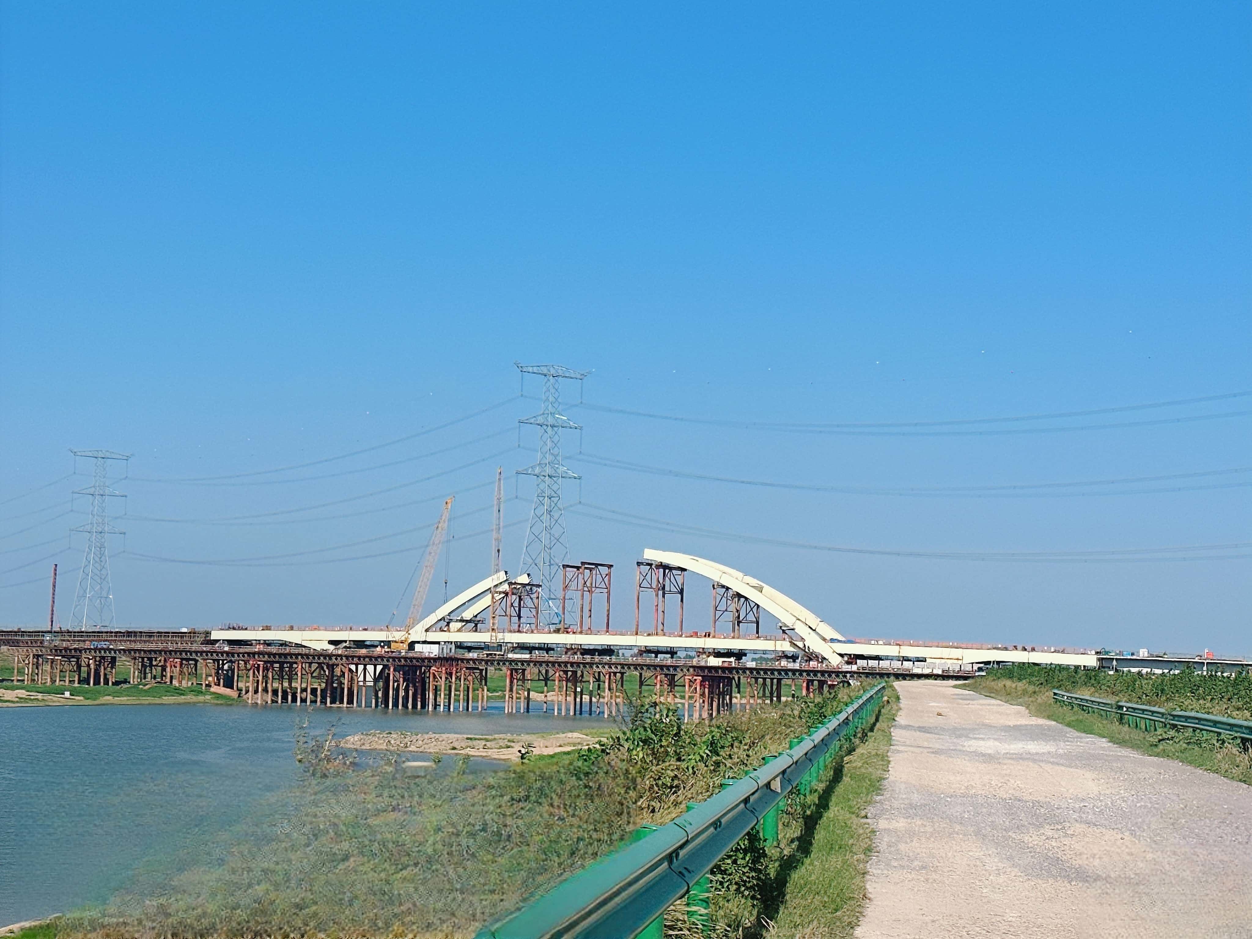 项目现场机械轰鸣,施工车辆来回穿梭,各个工种密切配合,一派繁忙,项目部紧盯时间节点,严把安全关、标准关、质量关,严格按照项目计划推进,目前主桥第五联、左右辅道钢箱梁顶推作业正在同步推进。