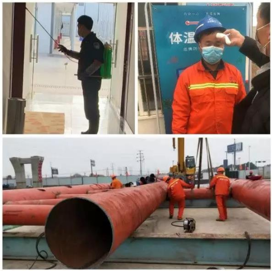 业主组织监理与承包方建立专门疫情防控小组,在显著位置张贴防控疫情海报,并给现场人员分发防疫情小手册,对新进工地员工进行疫情防控培训;要求施工人员带好口罩;宿舍、食堂定时进行消毒;每天上下班给工作人员测量体温,确保复工工作安全开展。