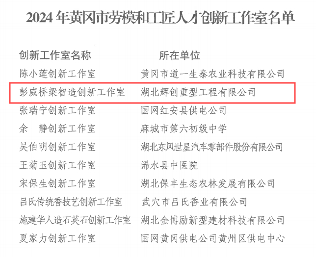辉创重工始终将劳模与工匠人才的培育发展置于重要战略地位。此次荣获“2024年黄冈市劳模和工匠人才创新工作室”称号,充分彰显了公司在技术创新、人才培养以及团队建设等关键领域的卓越成就。公司依托“彭威桥梁智造创新工作室”平台,充分发挥劳模与工匠人才的示范引领作用,聚焦技术前沿,积极开展技术攻关、工艺优化与创新实践,有力推动了公司技术升级与产业转型。此外,工作室秉持“传帮带”理念,通过师徒结对、专业培训等多种形式,培养出技术精湛、作风优良的高素质技能人才,为公司的持续发展提供了坚实的人才支撑。