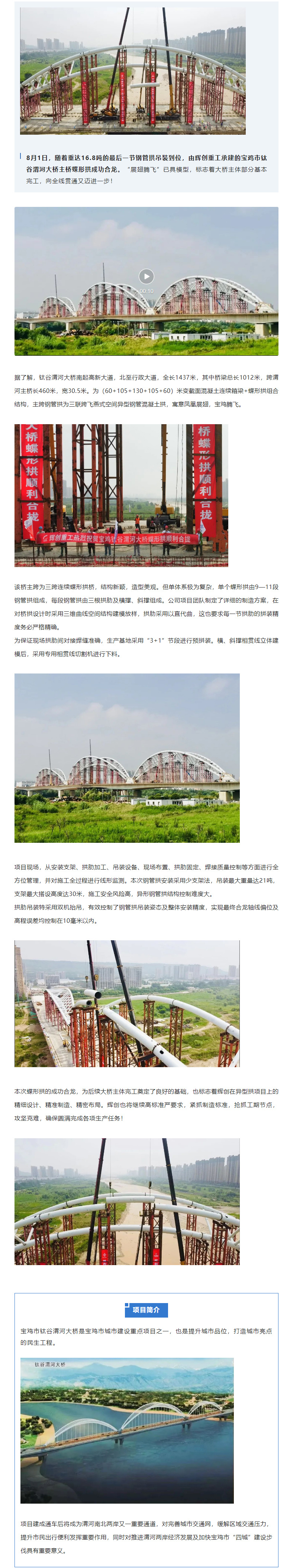 项目快讯|宝鸡市钛谷渭河大桥蝶形拱成功合龙!
