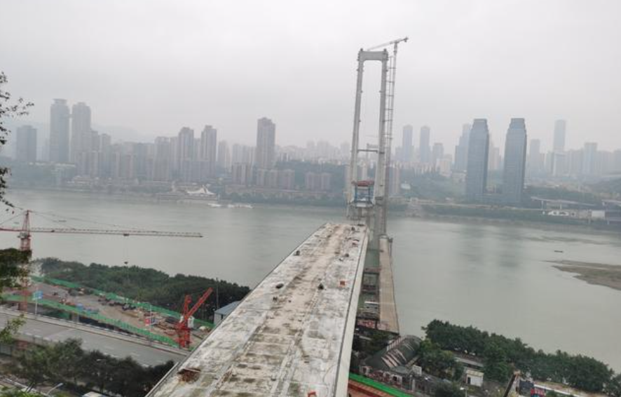 重庆南纪门长江大桥,全长1225米,主桥为五跨高低塔双索面斜拉桥,建成后将连接重庆渝中区与南岸区。该项目正在进行紧张的吊装作业,预计本月月底合龙。